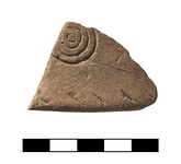 | Description: | Fragment of base and lower wall of a pyxis; broken on all sides. Flat base, vertical wall. Deep carefully made incisions; row of simple hatching at the edge, pattern of concentric circles on the side. Light brown reddish micaceous clay; burnished; traces of reddish slip. Probably Cycladic. | |