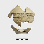 | Description: | Sixteen sherds mended into four non-joining sections to a small closed shape (probably a jug), with raised concave base. The exterior decoration consists of three bands below the handle zone and a medium band at the junction of the neck and the shoulder. The paint is thick and evenly applied, fired black, but badly flaked away. There are no traces of use-wear. A couple sherds are stained or burnt. | |