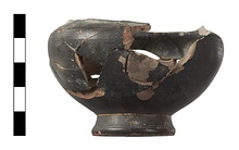 | Description: | Large part of a vase covered with black glaze inside and out. Put together from many bits. Reddish clay. | |