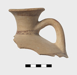 | Description: | Neck and handle of a Mycenaean vase. Yellow clay, pal. Bands of brown paint around the lip, around the neck where it rises from the body, around the body below the handle, and down the handle in a wavy line form, the only decoration. | |