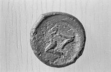 | Description: | Obverse : uncertain, prpobably head left. Reverse : symbol. Cf. Svoronos (1923), class III (?), pl. 101, no. 12 (for reverse). | |