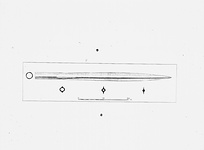 | Description: | Very poor condition but dimensions preserved. Plain circular socket without ring. Pronounced midrib round in section. Flanged blade seems to contract ca. 0.15 from socket, then expand in flame shape for 0.25, then contract ovally, stopping 0.02 before extremity of point. Midrib contracts from 0.02 at shaft to 0.004 at point, maximum width of blade on either side 0.015. | |