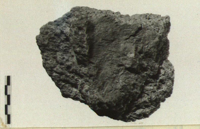 | Description: | Fragment lacks inner surface, but has its curved contour. Heavy blackening. Coarse red clay of outer layer has on it joining straight lines that were irregularly scratched in wet clay with narrow blunt instrument. | |