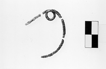 Bow of twisted wire; spring (one turn); pin shaft circular in section. Catchplate not preserved.