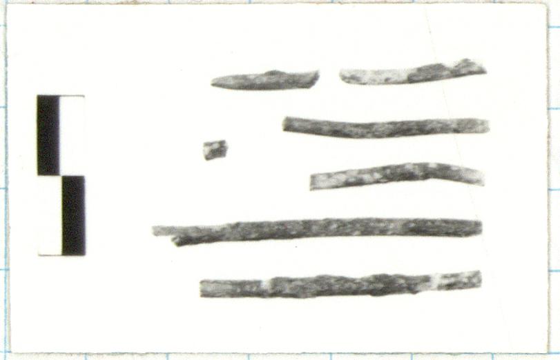 | Description: | Seven fragments of shaft of long pin, round in section. Point preserved. | |
