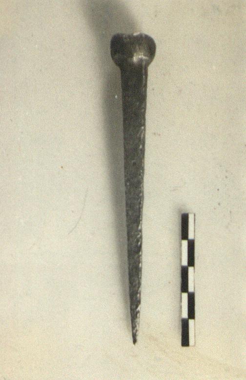 | Description: | A heavy spike, rectangular in section, with a round head. | |