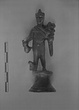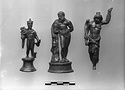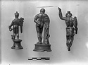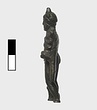 | Description: | Hermes stands facing, on a small concave sided base. He is nude save for a twist of drapery around his shoulders. In his right hand he carries a small bag, in his left a daduceus. On his head is a small pointed cap. Animal at feet (Ram ?). Base missing (3/19/58, 9/2000). | |