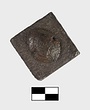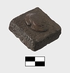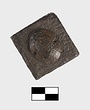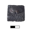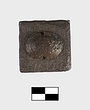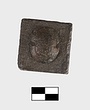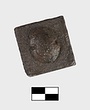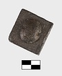 | Description: | Thick square slab of bronze. The metal having a high lead content. On the top added in relief, an oval shield. Inscribed on top lengthwise of the shield and around two vertical faces. | |