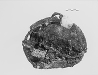 | Description: | Badly bent and corroded but largely complete. Apparently an open bowl with rounded bottom and put-turned lip. One horizontal handle is preserved, attached below the lip. | |