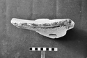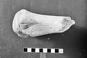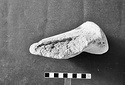 | Description: | The thin edge broken. A large shoulder blade, probably of a whale, with a rectangular cutting at the top. The broad surface shows marks of cutting. | |