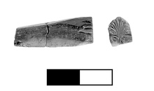 Length of bone, roughly square in section, slightly flaring at preserved end with palmette stamp carved into it. Stamp is slightly off the long vertical axis. Palmette with seven petals springing from two volutes.