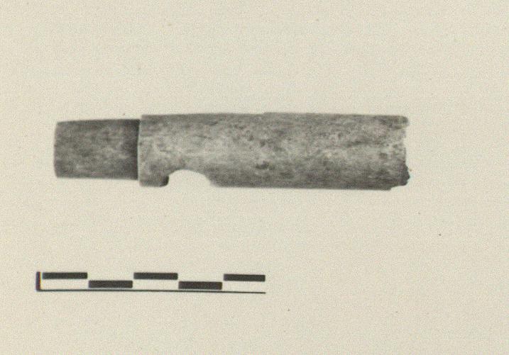 | Description: | Longitudinal half of a section, slightly chipped at one end. Flanged at both ends. One airhole. | |