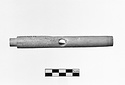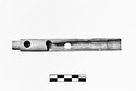 | Description: | Cylinder, flanged at one end to fit innermost piece. About two-thirds of the upper side split off; in the remainder two round stop-holes. On the other side another, about half way down the length of the piece. | |