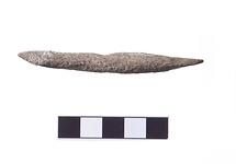 | Description: | Chisel-shaped tool with four holes drilled through it. Late Helladic. | |