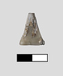 | Description: | Part of one side and most of bottom lost. Flaring truncated pyramid. Restored in wax. Incised decoration on all faces. | |
