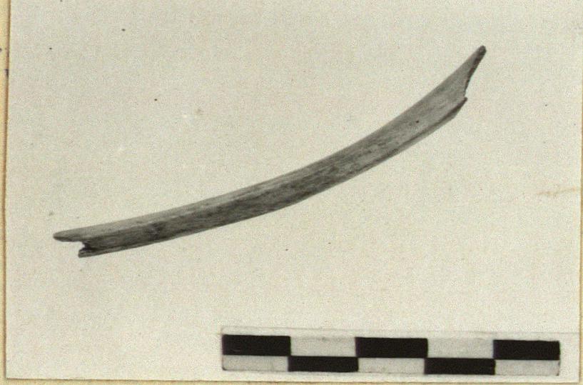 | Description: | Small curved piece. Green surface from contact with bronze. | |