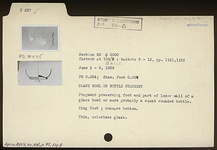 | Description: | Fragment preserving foot and part of lower wall of a bowl or more probably a squat rounded bottle. Ring foot; concave bottom. Thin, colorless glass. | |
