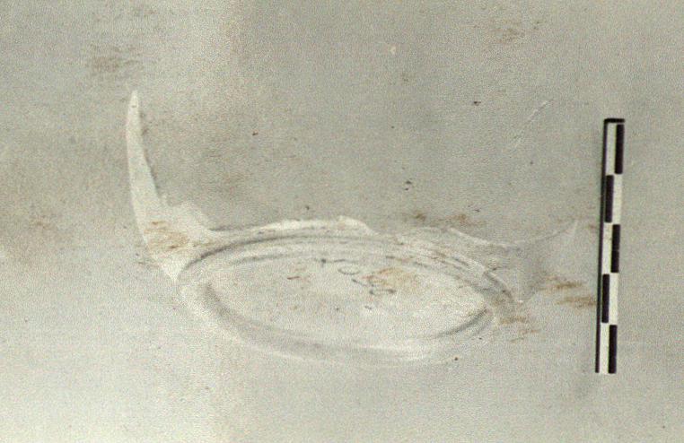 | Description: | Fragment preserving foot and part of lower wall of a bowl or more probably a squat rounded bottle. Ring foot; concave bottom. Thin, colorless glass. | |