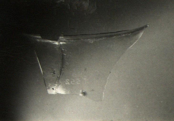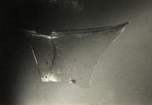 | Description: | Two joining fragments preserve about a third of the rim and part of the straight side wall. Rim turns out and up slightly. Possibly slight trace of thumb indents. Pale blue green glass. Very similar to G 352. | |