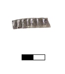 | Description: | A fragment of rim from a small bowl. Vertical rim, decorated with ribbing. Bluish glass. | |