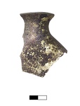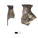 | Description: | The upper part of a flat-backed flask. It has small mouth and plain flaring rim. Olive green glass. | |