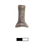 | Description: | Tube with pinched and spread end. Light greenish glass; oxydized; surface corroded at places. Stem of bowl (?) | |
