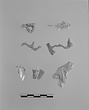 | Dimensions: | Max. Dim. a) 0.039, (fragment b, larger fragment) 0.018, (fragment b, smaller fragment) 0.017, c) 0.025, d) 0.036, e) 0.021, g) 0.019, (fragment h-1) 0.082, (fragment h-2) 0.066, (fragment i-1) 0.091, (fragment i-2) 0.045, (fragment i-3) 0.047, j) 0.055 | |