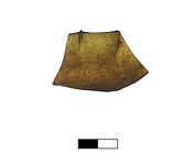 | Description: | From an open bowl with flaring rim. Below rim outside, shallow parallel grooves; ribs in relief on body. Brownish amber, somewhat iridescent. | |