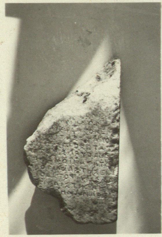 | Description: | Inscribed fragment. Part of right side dressed with toothed chisel preserved; otherwise broken. Edges and face water worn. Parts of twelve lines of the inscription preserved. Pentelic marble. | |