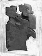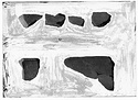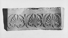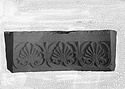 The larger, ca. 0.24X0.19, has a slightly concave surface on which are remains of crude incised decoration, at left edge, spiral tendrils, at right, part of a wreath (?).