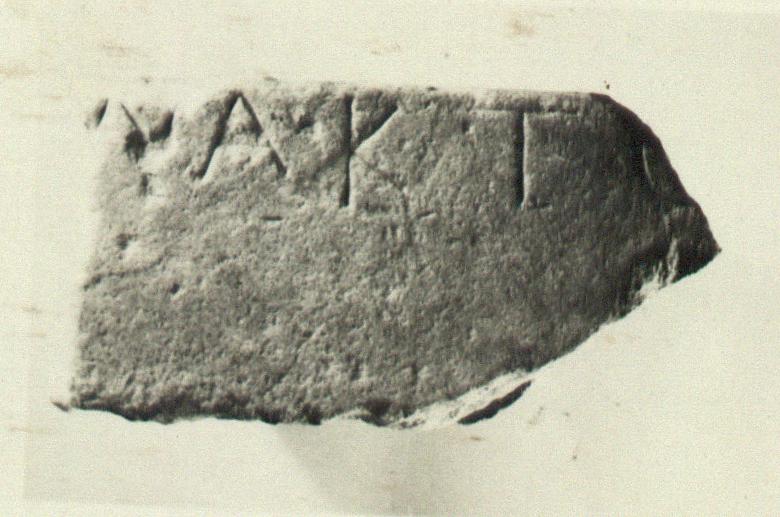 Context:   a) (Κ 14), found in the wall of the modern house 635/11, at the south of the west end of the Middle Stoa.