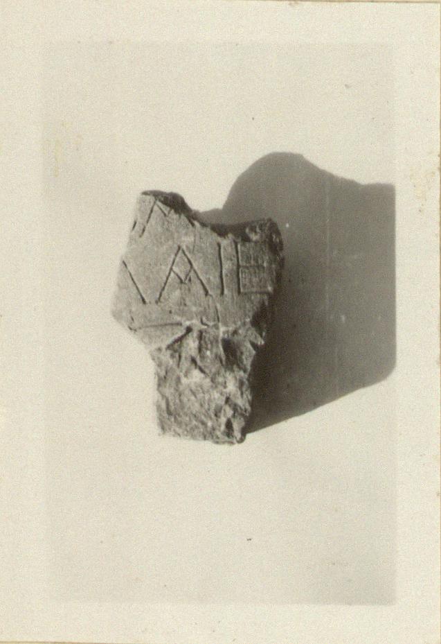 | Description: | Fragment of columnar grave monument. Broken all round. Part of one line of the inscription preserved, with traces of two others, one above and one below. Hymettian marble. | |