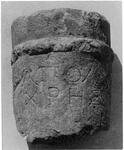 Description:   Top of columnar grave monument.