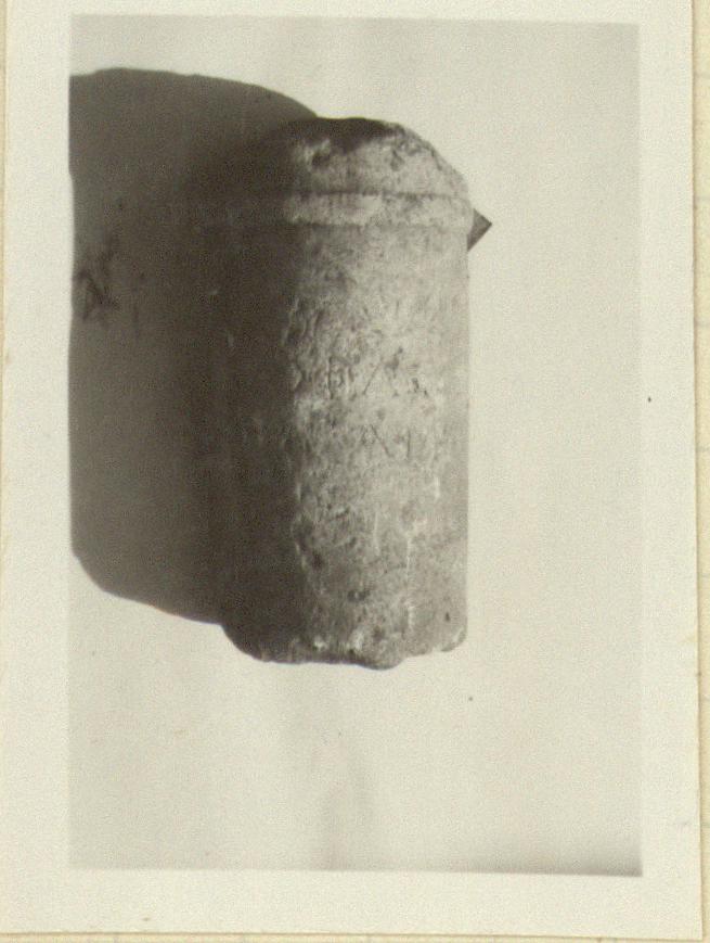 | Description: | Top part of columnar grave monument. The front half of a small shaft, broken at the top and bottom. Inscribed in three lines. Hymettian marble. | |