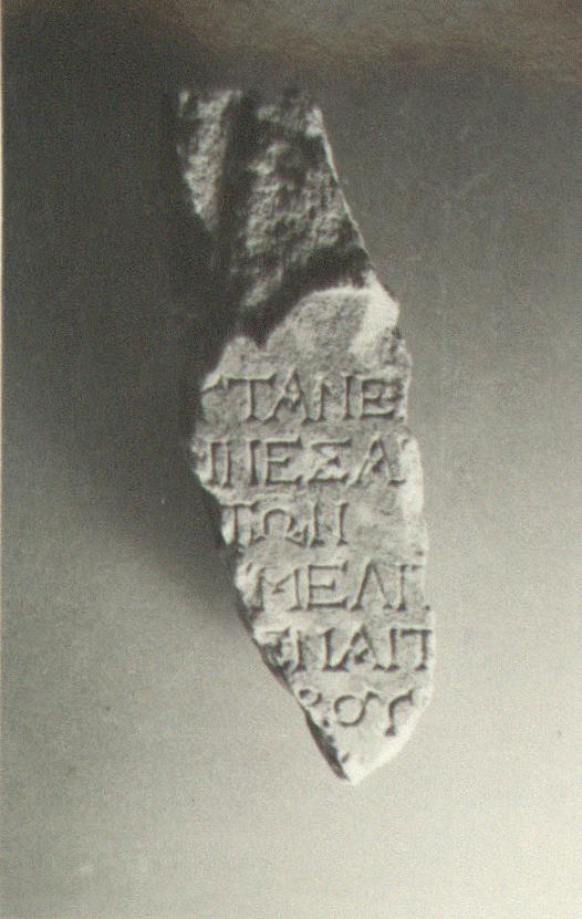 | Description: | Inscribed fragment. Moulding above inscription broken away, but part of the top surface preserved; otherwise broken. Six lines of the inscription preserved, and a trace of a seventh below. Pentelic marble. | |