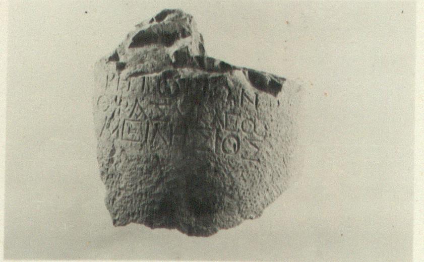 | Description: | Columnar grave monument. Broken on all sides. Three lines of the inscription preserved. Hymettian marble. | |