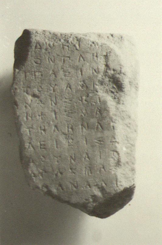 | Context: | Found in a modern wall, south of the central part of the Middle Stoa. | |