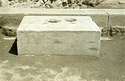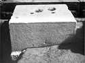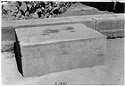 | Description: | Inscribed statue base. About the three exposed sides a band was left undressed around the bottom, and this projects ca. 0.025m. beyond the finished face above. This upper face would seem originally to have been smooth-dressed all over, and then to have been stippled by a fine point driven with short vertical strokes. Along every edge, however, a band (0.025-0.03m.) was left smooth dressed. The back was treated differently. It was first picked fairly smooth, and then a band of drafting was run striking its edges. The top is smooth; in its surface are dowel cuttings for a statue which stop of facing west, its right foot slightly advanced. For each foot there were two dowels, one from the heel, one from the ball. The lower ends of the bronze dowels for the balls of the feet remain in place, imbedded in lead. Of the other dowels only the lead packing remains. The statue would seem to have been carefully removed; the rear dowels chipped free, the front ones broken off. Dedicatory inscription of Leagros, the son of Glaukon to the Twelve Gods. Along the smooth band across the top of the front face runs the inscription, in archaic letters. The tops of the letters in the upper line have been worn away by traffic over the top of the base after the disappearance of the statue. The writting starts at the extreme left edge of the stone, but the upper line occupies only 0.48m. of the total breadth of 0.783m. Pentelic marble. | |