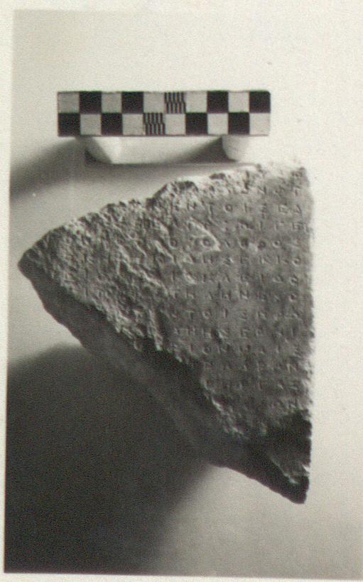 | Description: | Fragments of an opisthographic stele. "POLETAI" record. Archonship of Aristodemos and Thoudemos. Fragment Β 494 (a), part of one side, the right side of face A, is preserved, tooth chisseled; otherwise broken. The surface is eaten in places by the acids of the cesspools near which it was found. On face A, fifteen lines of the inscription preserved; on face B, eight lines; stoichedon. Another fragment (B 824), joins with B 494 (a), above. Part of toothed right side of face A preserved; otherwise broken. On face A, traces of twelve lines of the inscription; a single letter on face B. A number of six fragments found in section B 1519a-f (b-g), have been given this same number. Fragment B 1535 (h), lettered face only preserved. Seven lines of the inscription preserved, one to three letters in each. Fragment B 1587 (i), have been also found in section B. Fragment B 1737, inscribed face, and right side only preserved. Joins to Fragment B 1519e. Thirteen lines of the inscription preserved. Fragment B 1829, retains parts of both faces, but broken all around. On face A, fourteen lines of the inscription preserved; ten on face B. Hymettian marble. | |
