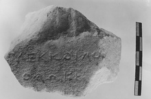 A finished face (?) at right, not at right angles to the inscribed surface; otherwise broken.