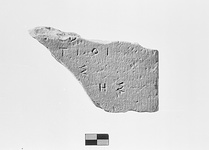 | Description: | Inscribed fragment. Toothed right side preserved; otherwise broken. Four lines of the inscription preserved, with one to four letters in each. Hymettian marble. | |