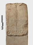| Description: | Square herm with sockets for beam-like arms; head missing. A few anatomical indications at the base of the neck. The back has been used as a threshold. Inscribed across bottom. Pentelic marble. | |