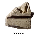 | Description: | Fragment of sculptural inscribed stele. The upper part of a stele, broken above, below, and to the left. Back rough. At top, a carved relief, a draped figure standing facing an altar in center. Four lines of the inscription preserved, and one letter in a fifth. Pentelic marble. | |