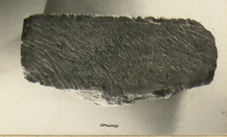 | Description: | Fragment of marble block with graffito. Early Christian Epitaph (?). Broken at left and bottom; top and back smooth picked. Inscribed face smooth. The inscription surely later than the block. The right side also has some scratches (drawings?) Hymettian marble. | |
