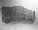 Fragment Γ 2341, two large joining fragments which join to I 231. Narrow raised band at right edge, and shalow gouged vertical channel set in from edge at both sides.