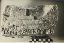 | Description: | Inscribed fragment of grave stele. Inscribed face only preserved. The inscription is below a low rectangular moulding. Two lines of the inscription preserved. Pentelic marble. | |