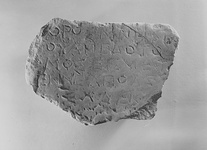 | Description: | Inscribed fragment; boundary stone. Broken away at back and below. Top and piece of left side and back preserved. Hymettian marble. | |