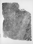 | Description: | Broken away below and at upper right corner. Minor fractures. The block, originally the capping course of a monument (?), has been reworked into a stele. Coarse-grained gray marble. | |