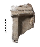 There seems to be an iron nail in the top; in the lower left end of the pilaster, a hole for an iron dowel.