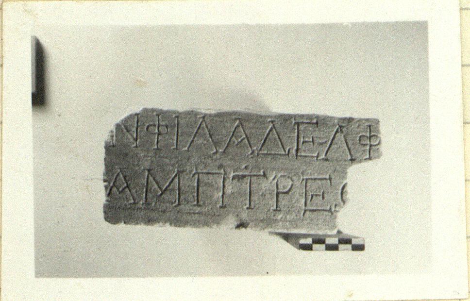 | Description: | Fragment of inscribed base; statue base. Inscribed face and original front edge at bottom preserved. The back part of the bottom is rough hacked; here there may have been a face projecting down, and of which inscribed surface would be only the moulding. From the base of the statue of Ptolemy Philadelphos, set up in front of the Odeum (?). Hymettian marble. ADDENDA Seems to belong with I 6215 (ΣΑ 619). | |